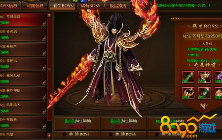 然后是转生装备,转生装备来源于转生BOSS,根据游戏里BOSS指引打就可以了。打转生BOSS的时候要注意,转生BOSS都有转生抗性,抗性达标才能扛得住BOSS的攻击。转生抗性可以通过转生装备和转生等级提升来增加。