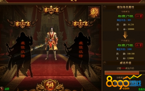 威名作用:威名值高的玩家可对威名值低于自己的玩家造成额外的伤害加成。威名榜排名前三的玩家造成的额外伤害将会大幅增加