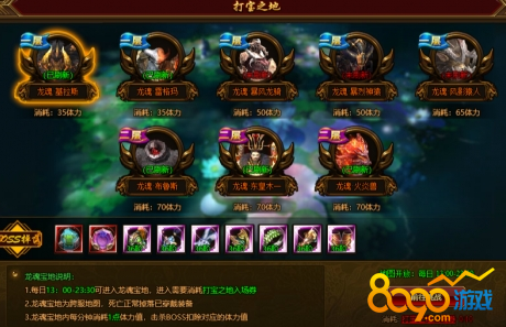 打宝之地每天13点-23点30分开放,进入打宝之地需要打宝之地入场券,每次消耗10张入场券,进入打宝之地后,每分钟会消耗1点体力值,不同的BOSS击杀时也会消耗体力值,体力值消耗完毕将不能继续在打宝之地停留。