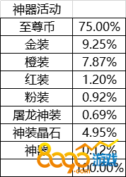 开服1888次寻宝活动,每次寻宝1%的概率获得奖池中物品,1888次全部出完,其他概率与正常寻宝相同