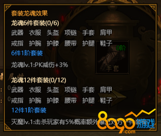激活龙魂12件套装效果,还可以获得灭魔,灭魔在击败玩家时有5%概率额外爆出对方一件装备。