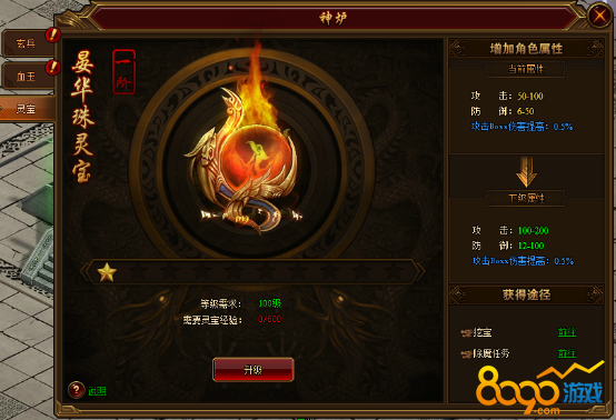 神炉系统内可以培养玄兵、血玉、灵宝三种特殊装备、每种装备开启对应不同的等级