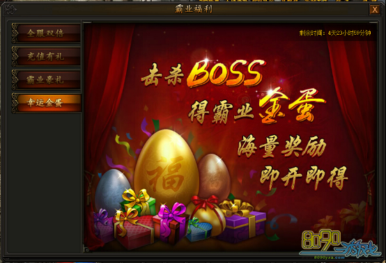 活动期间,击杀BOSS有几率掉落金蛋、银蛋、铜蛋,开启可能获得转生丹、经验丹、绑元等奖励。