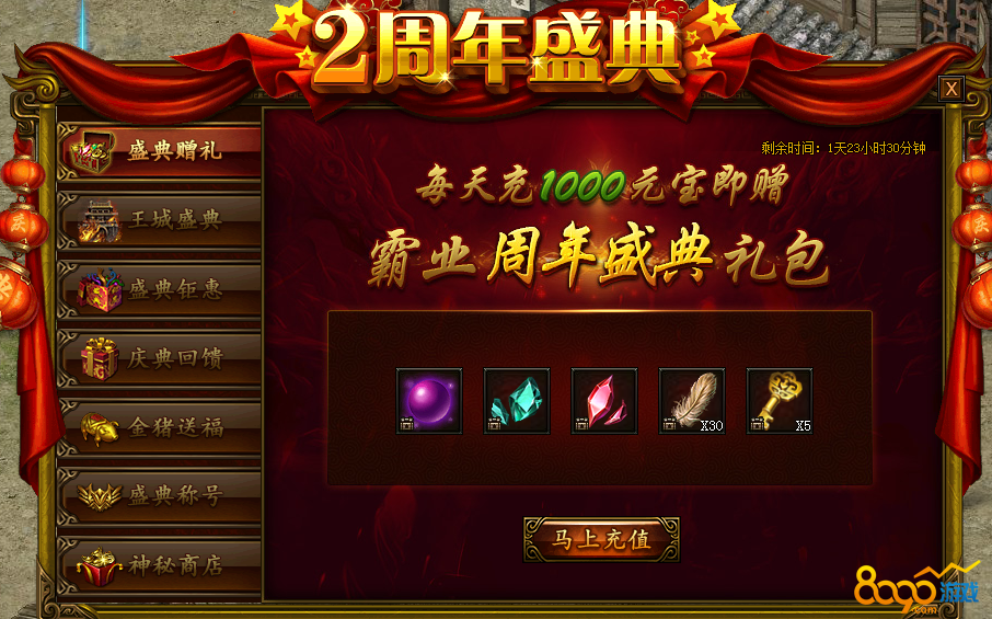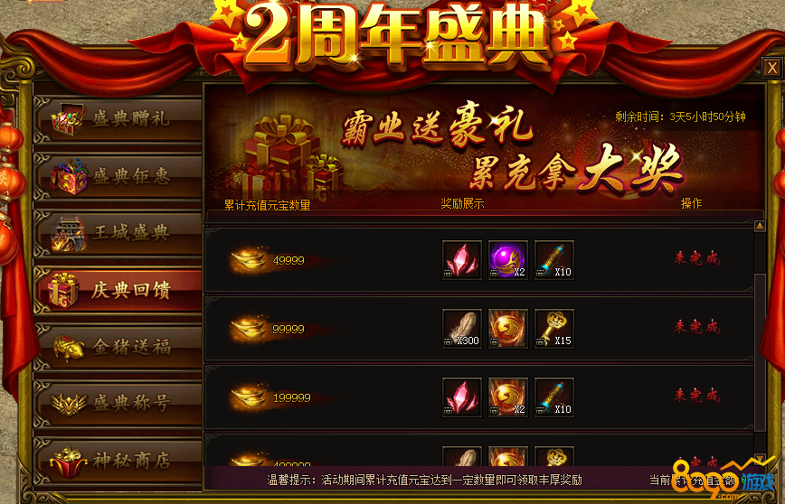l 活动期间,充值元宝即可领取丰厚奖励,每天均可领取一次,不容错过!