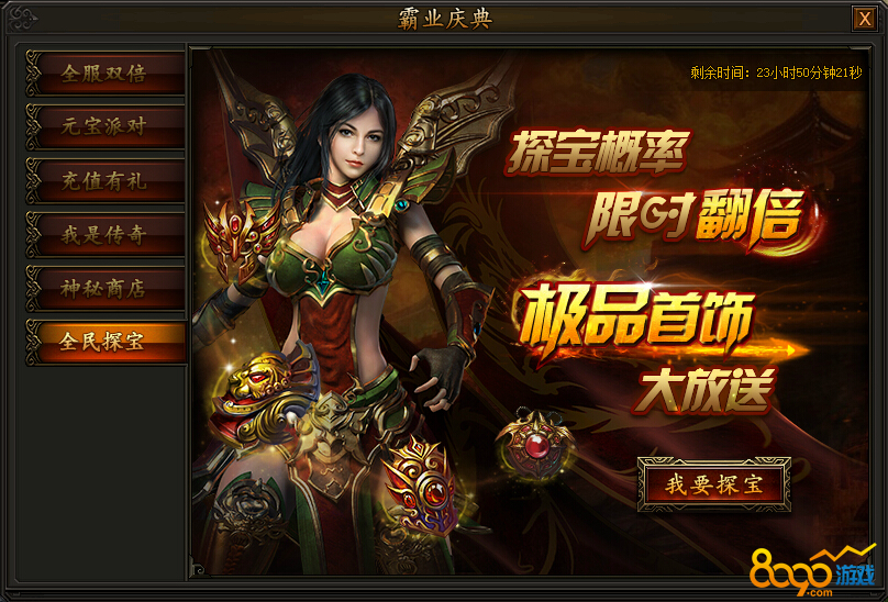 活动期间,探宝概率限时翻倍,极品首饰大放送。