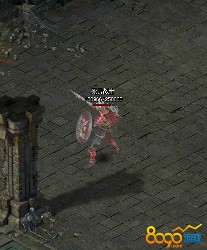 首先来到战神殿,找到战神遗迹NPC,点击进入,除了里面大BOSS暗影战神有几率出技能书之外,找到死灵战士击杀也可爆出技能残页,就是这种拿盾牌的怪,一眼就能认出来。