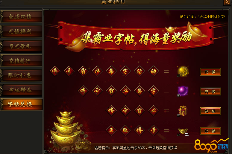 传奇霸业字帖活动的介绍就到这了,更多精彩内容,敬请关注8090传奇霸业官网。