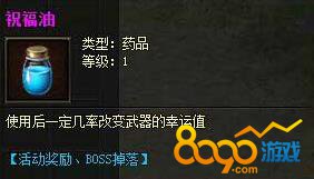 获得祝福油后,玩家可以点击使用,有三种结果:第一种就是成功,武器幸运值+1。第二种就是祝福无效,没有效果产生。第三种就是祝福失败了,武器的幸运值-1。幸运值越高的武器,祝福成功的几率也就越低。