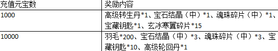 活动期间,充值元宝即可领取两档丰厚奖励,每天均可领取一次,不容错过!
