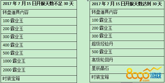 转盘道具内容根据开服天数不同而不同,具体内容如下: