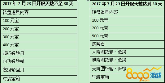 转盘道具内容根据开服天数不同而不同,具体内容如下:
