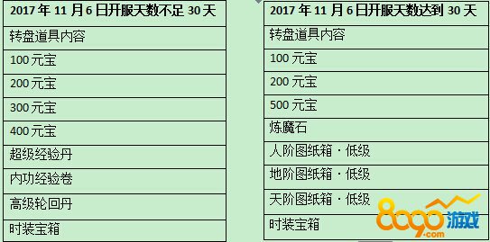 转盘道具内容根据开服天数不同而不同,具体内容如下: