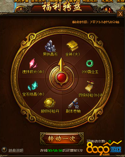 • 传奇霸业1月20日-23日全民宝石 福利转盘豪礼等你来抽