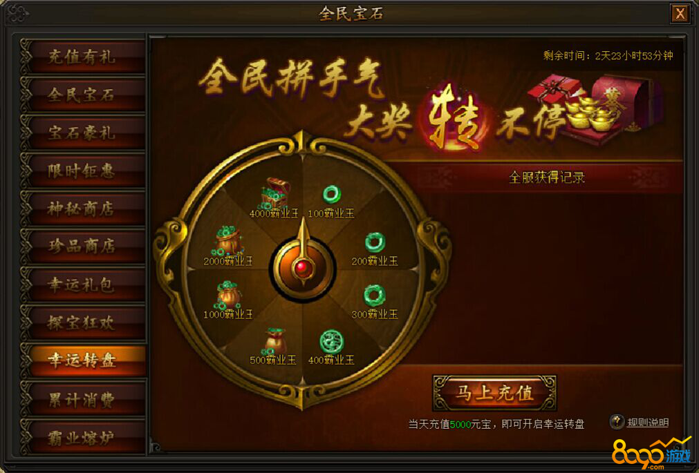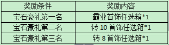 • 传奇霸业全民宝石竞技 6月26-28日幸运转盘拼运气