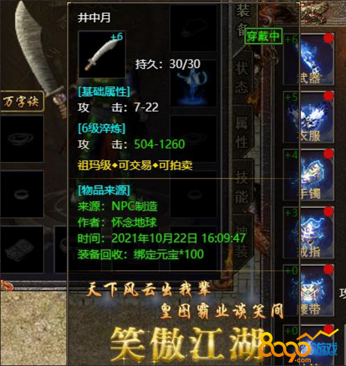 2、淬炼后,玩家更换装备,淬炼等级依然存在