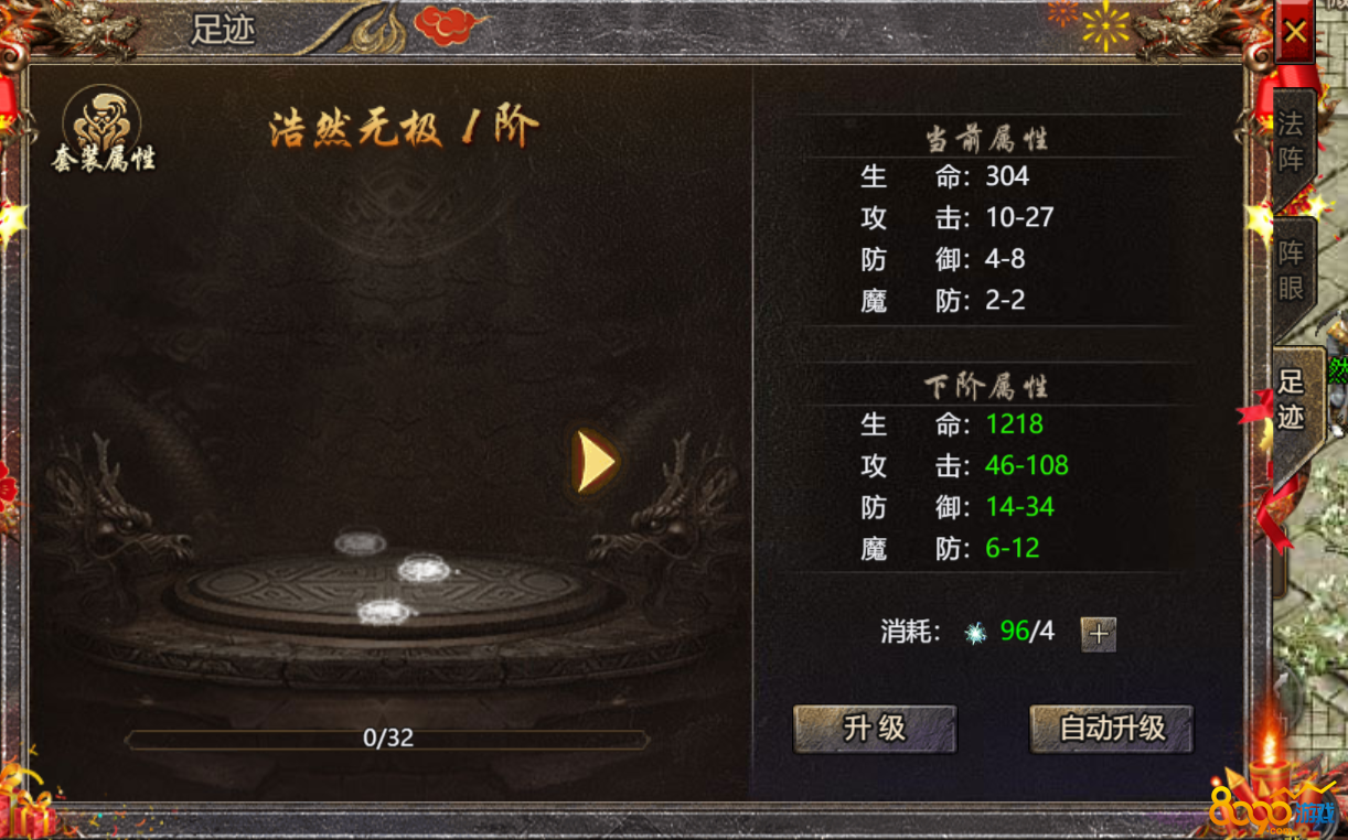 1、开服130天后,玩家可消耗足迹之灵,升级足迹系统