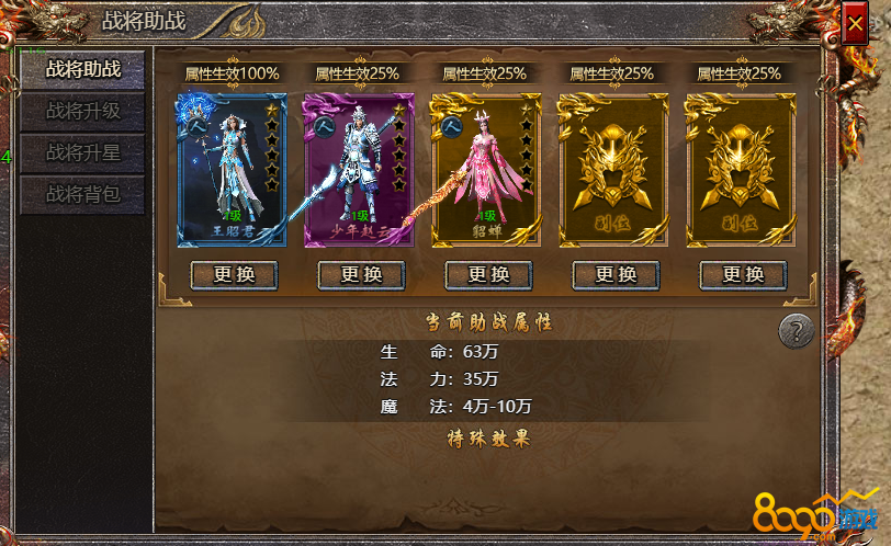 2、玩家获得多个战将后,可选择指定战将进行助战