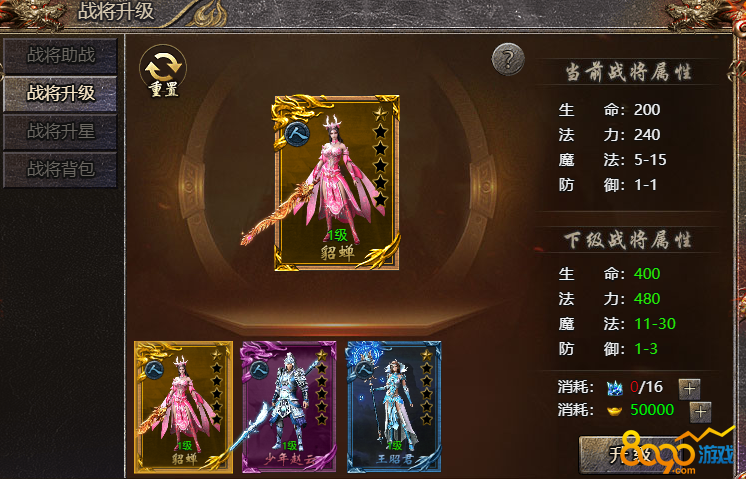 8、升级后,玩家可消耗巅峰币,重置战将,无损返还材料(不返还元宝)