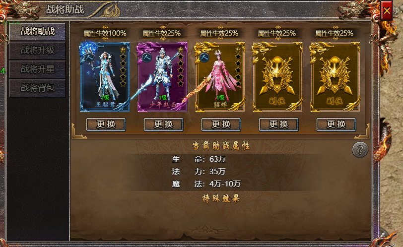 5、战将属性和特殊技能只有在巅峰争霸玩法内才生效