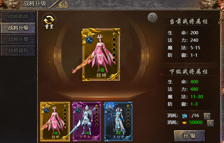 8、升级后,玩家可消耗巅峰币,重置战将,无损返还材料(不返还元宝)