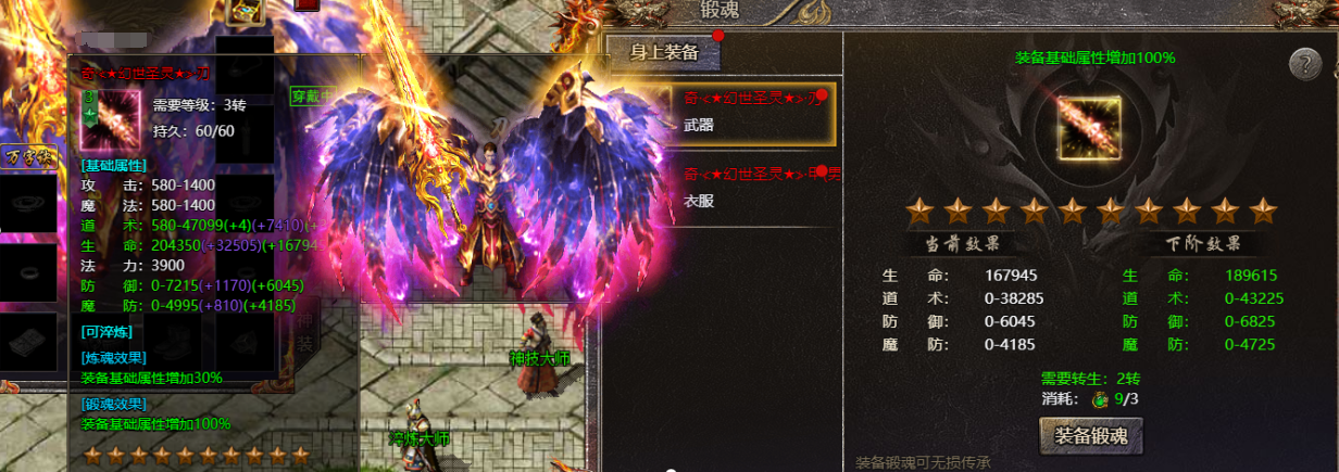 1、消耗对应魂之宝石可为装备锻魂,从而获得强大力量