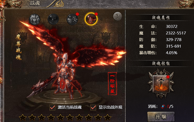 3、使用战魂精元可以提升战魂星数,每满10星可以提升到下一阶