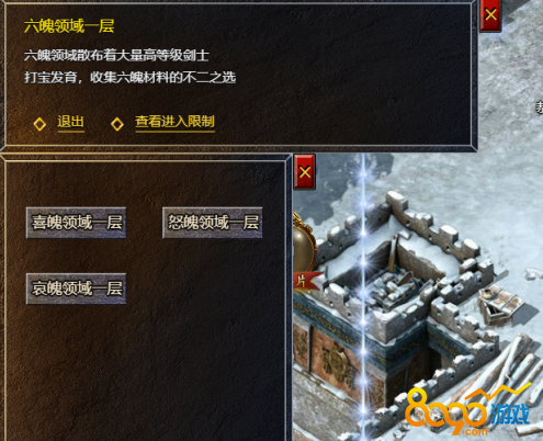3、六魄领域有大量的六魄怪物,有概率掉落六魄晶石,玩家需要集齐更高阶的荒古装备才能挑战更强的魔盾怪