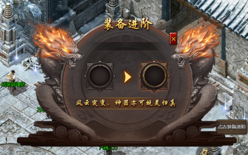 进阶成功后可获得更强力属性的荒古装备。进阶有概率失败,进阶失败后的荒古装备有概率会降阶,可使用特殊道具进行进阶保护,防止进阶失败后荒古装备降阶。