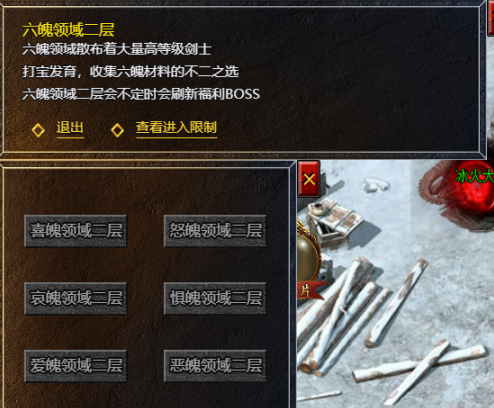 1、开服240天后,玩家可进入六魄领域