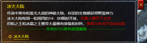 2、玩家可在冰火大陆中击杀BOSS,获得稀有装备以及材料