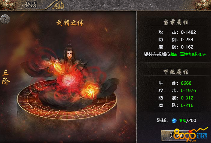 3、升级后的体质系统不仅有大量属性加成,更可以对人物战装基础属性进行额外加成