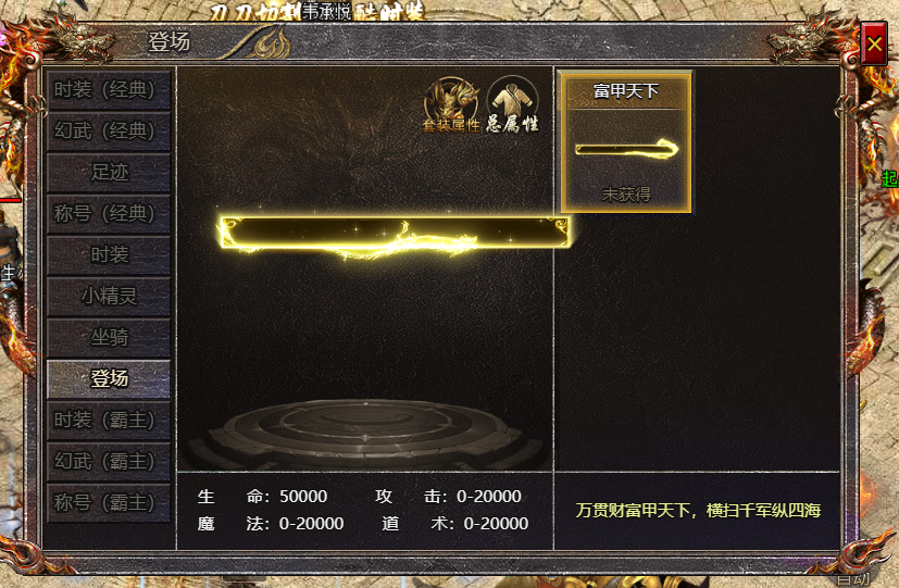 1.开服200天后,玩家解锁登场装扮。