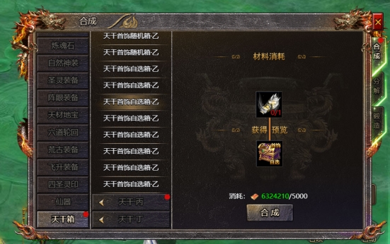 4、合成中的天干乙,天干丙,天干丁新增首饰自选箱的合成
