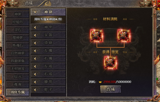 5、周年专属装备可在【合成-周年专属】中合成升级