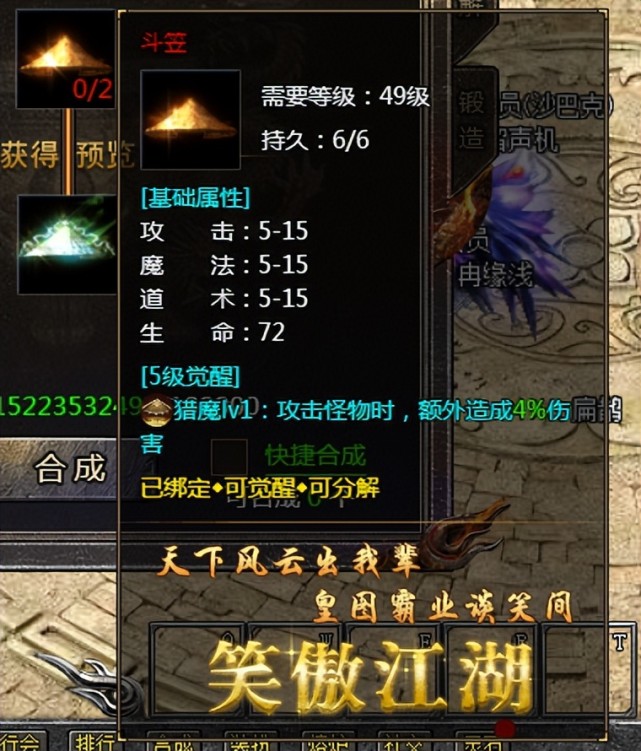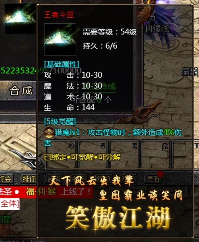 搜索"8090网页游戏"在传奇霸主这款游戏中,斗笠是个很重要的道具,那么斗笠的属性是怎么样的呢?一起来看看吧