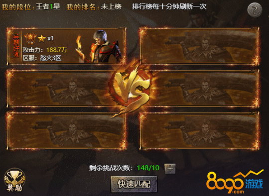 首先传奇霸主跨服决战是开服8天后4转以上的玩家可以参与的3v3pk玩法,其中有段位匹配机制,分别是王者、荣耀、神圣、永恒、至尊、霸主这6大段位,每个段位内用星级区分。每队的每个人都有3次复活机会,计时三分钟,当一方人员无复活次数或时间走完,游戏结束。