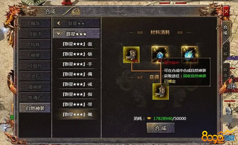 收集足够的自然碎片: 确保收集足够数量的传奇霸主自然碎片,以便进行自然神装的合成。