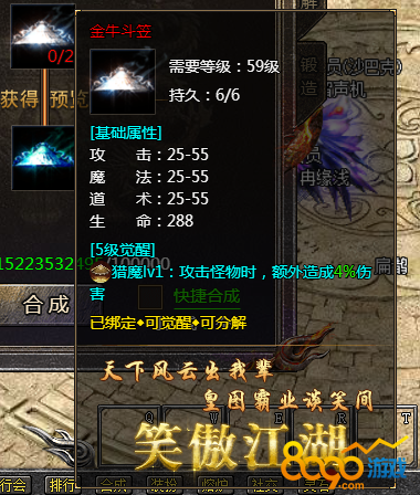 要获得传奇霸主斗笠,玩家可以通过收集斗笠碎片进行合成。例如,斗笠合成需要消耗100个斗笠的碎片,只需消耗这些碎片,即可合成一个1阶的斗笠。