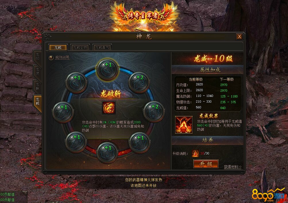 激活等级: 等级超过10级后可以激活龙破斩技能。