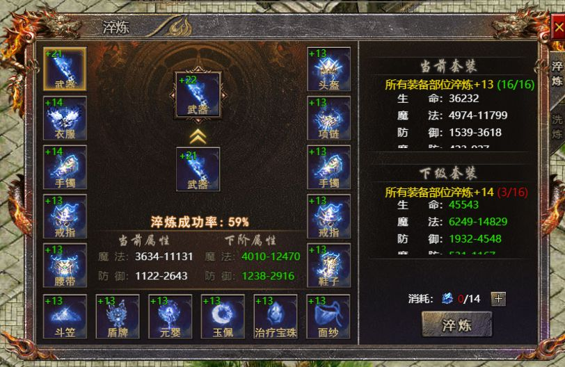 在淬炼的前10级,这是一个基础阶段,大部分玩家可以在此阶段获得可观的攻击力提升。然而,当淬炼等级达到10级后,成功率会显著降低,这时就需要使用神佑石进行保护,以避免淬炼失败带来的损失。