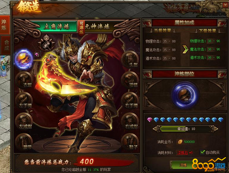 想要进行装备的培养是十分耗钱的哈,如果我们想要省钱的话,就必须需要利用元宝来提高一下成功率,这样我们在后期进行淬炼的话才可以很有可能成功哈,比较淬炼的失败是会让我们特别心痛的哈。
