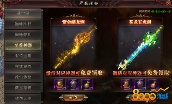 规则:开服7天内,激活极品神器和免费领取海量战纹,迅速建立优势。