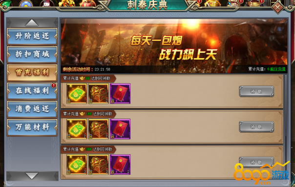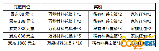 1. 活动期间累计充值达指定元宝数,即可领取道具奖励