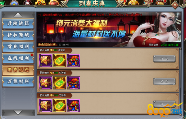 2. 该活动绑元、元宝消费均可计入累计消费额度