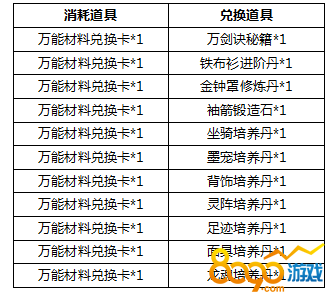 【活动内容】活动期间,消耗指定数量的万能材料兑换卡,即可兑换各类道具材料