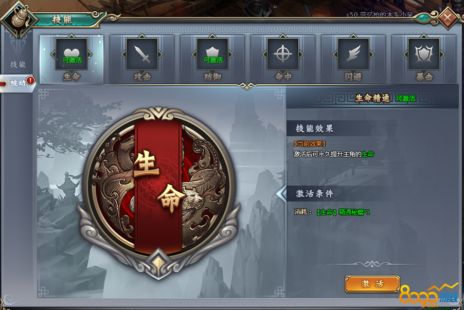 l 消耗对应的被动技能精通秘籍,可激活和升级被动技能