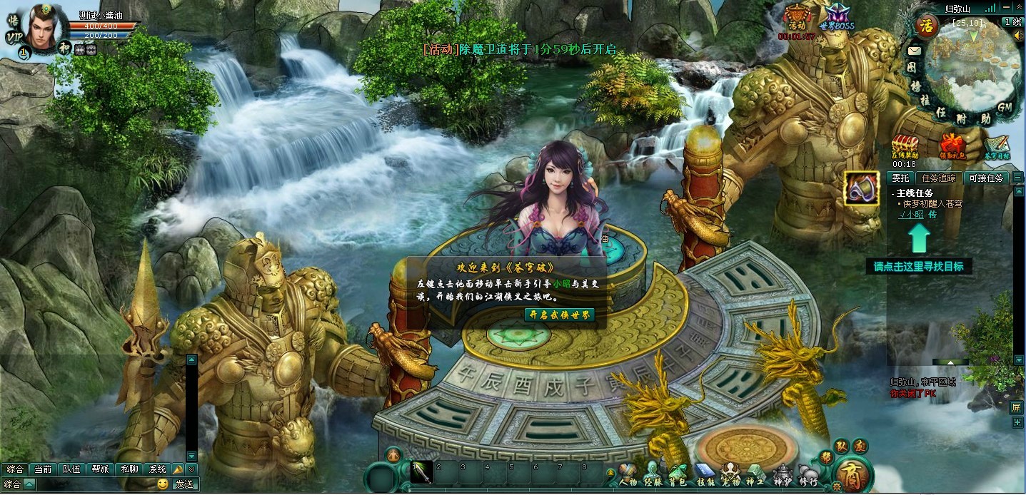 玩家创建角色进入游戏后,新手指导婼妘为你进行一步步游戏基本操作指引。点击新手引导仙子,按照文字提示指引完成第一个任务。