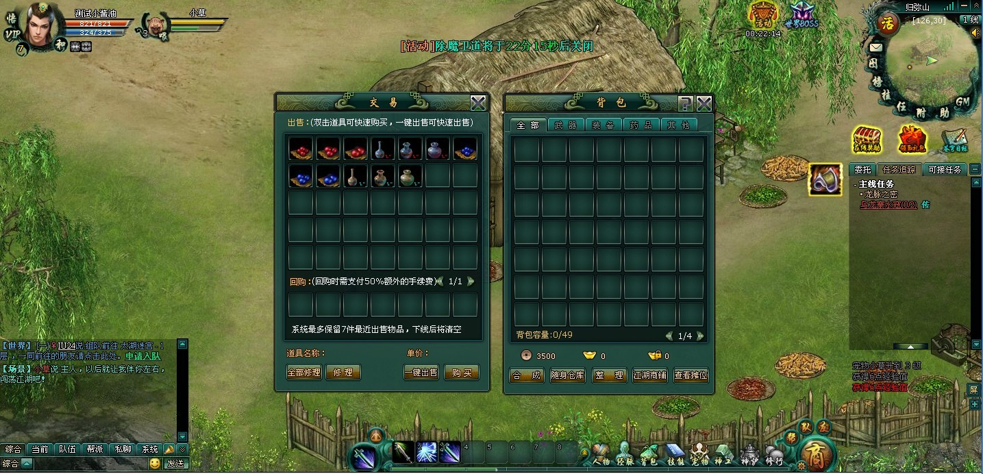 点击右上方的“图”按钮打开地图,点击药品店使用自动寻路功能找到卖药品的 NPC,在商店界面选择需要购买的药品,选择购买数量点击确定购买。