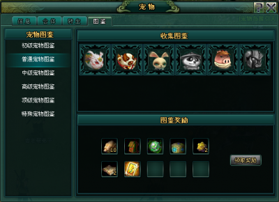(双击使用获得的宠物蛋,如果该宠物是第一次拥有,将点亮该宠物的图标,每一阶段的宠物全部点亮后,将可领取丰富奖励)