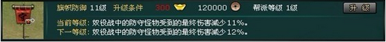 PVP专属,在帮派奴役战中决定帮派旗帜的防御力。前期消耗低,收益增长稳定,最高50级,对奴役战的胜败影响较大,并建议与帮派旗帜等级同步升级。
